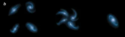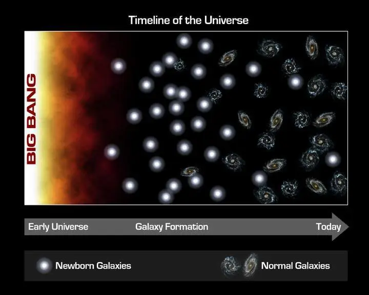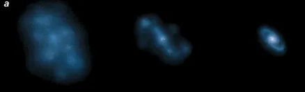 ปรกติแล้วกาแล็กซีขนาดใหญ่อย่างทางช้างเผือกเกิดจากการพุ่งชนและรวมตัวกันของกาแล็กซีขนาดเล็กอย่างบ้าคลั่งและวุ่นวาย (Chaotic Mergers) ซึ่งเป็นการกำเนิดกาแล็คซี่แบบที่เราสามารถสังเหตเห็นได้ในปัจจุบัน